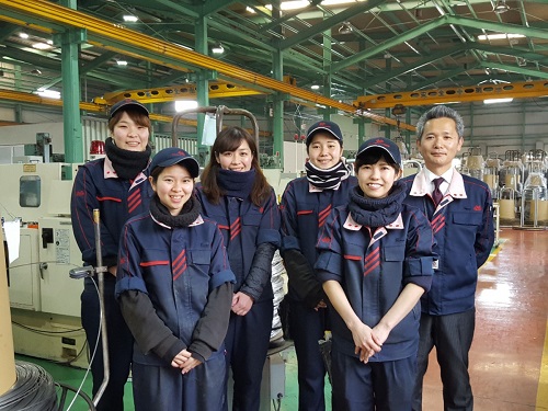 元々 汚い・重い・きついというイメージの工場の勤務では、女性の雇用は難しかったのですが、まずは現場の作業方法の見直しと設備投資。現場での教育・現場でのルールを見直しました。体力的なサポート・技術的なサポートは積極的に行っていて、男女差がでないような職場作りを目指しています。さらに短時間勤務や有給時間付与制度を実施。電動リフトや金属加工専用の研削器などの設備投資もおこないました。女性の働く環境の改善と同時に会社全体の働く環境も変わりました。最近ではネジガールのテレビ取材等も受けていて、ネジ工場のイメージアップにも貢献しています。